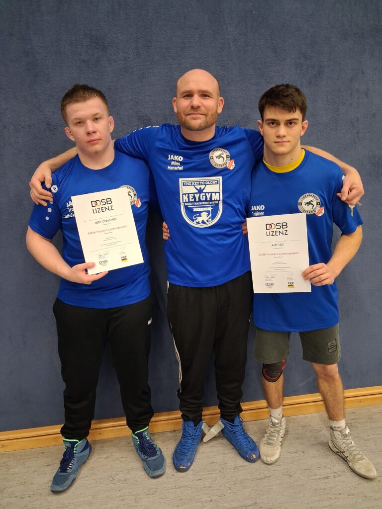 Beide Trainer absolvierten eine anspruchsvolle Abschlussprüfung, die sie mit Bravour bestanden haben. Trotz eigener Trainertätigkeit, regelmäßiger Teilnahme an Turnieren und Meisterschaften sowie der Betreuung von Nachwuchsgruppen – darunter eine Ringer-AG an einer Grundschule – bewiesen Izet und Heß großen Einsatzwillen und Organisationstalent. Neben Schule und Beruf haben sie gezeigt, dass ehrenamtliches Engagement im Ringen auch heute noch eine starke Community trägt.