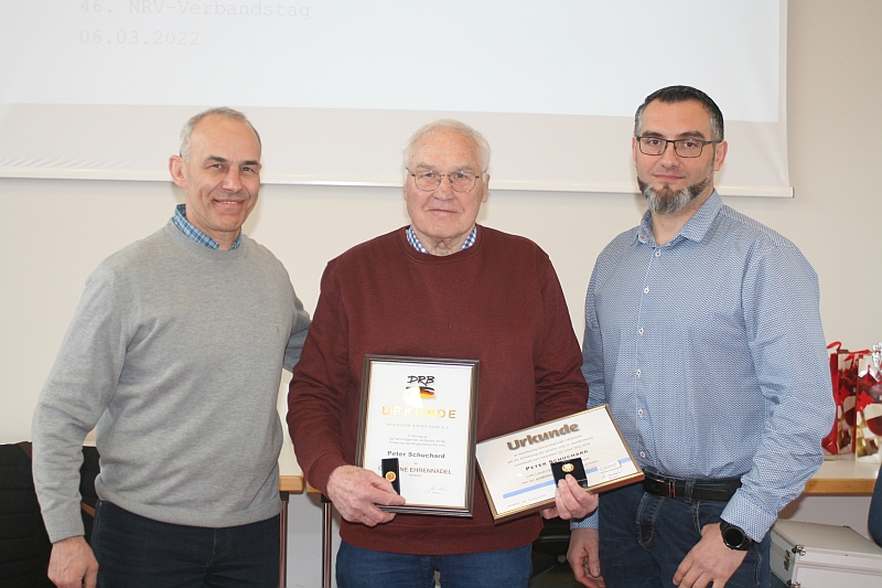 Ebenso erhielt Peter Schuchert zwei goldene Ehrennadeln (von DRB und LSB) als Referent für seinen Einsatz im Bereich Weiterbildung und Anti-Doping Beauftragter.