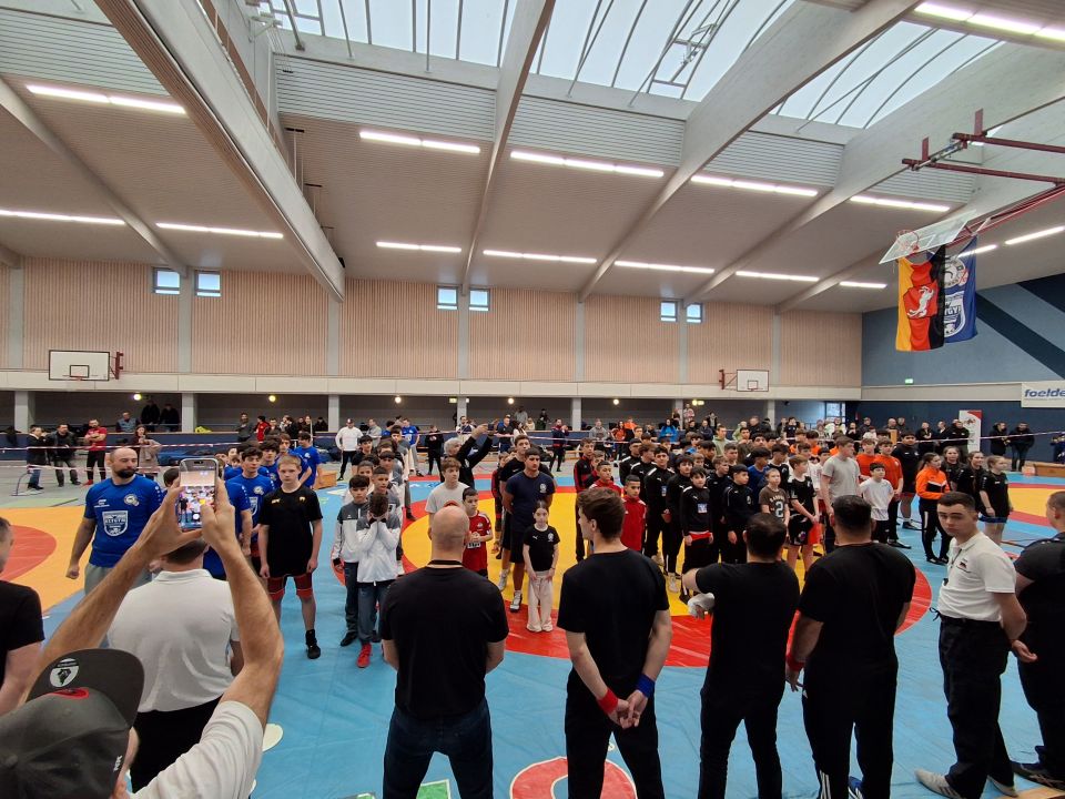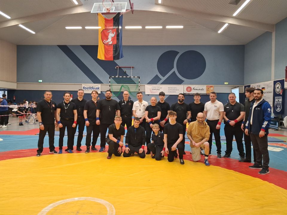 Spitzenmomente pur: packende Kämpfe, knappe Entscheidungen und beeindruckende Technik – live für Schaulustige und Fans in der Halle. Das Wettkampfbüro leitete Carsten Schäfer (Geschäftsführer NRW Ringerverband), unterstützt von Uwe Manz (Kampfrichterreferent für den derzeitigen NRV Lehrgang) mit einem Team von über 20 angehenden Kampfrichtern aus dem niedersächsischen Ringerverband.